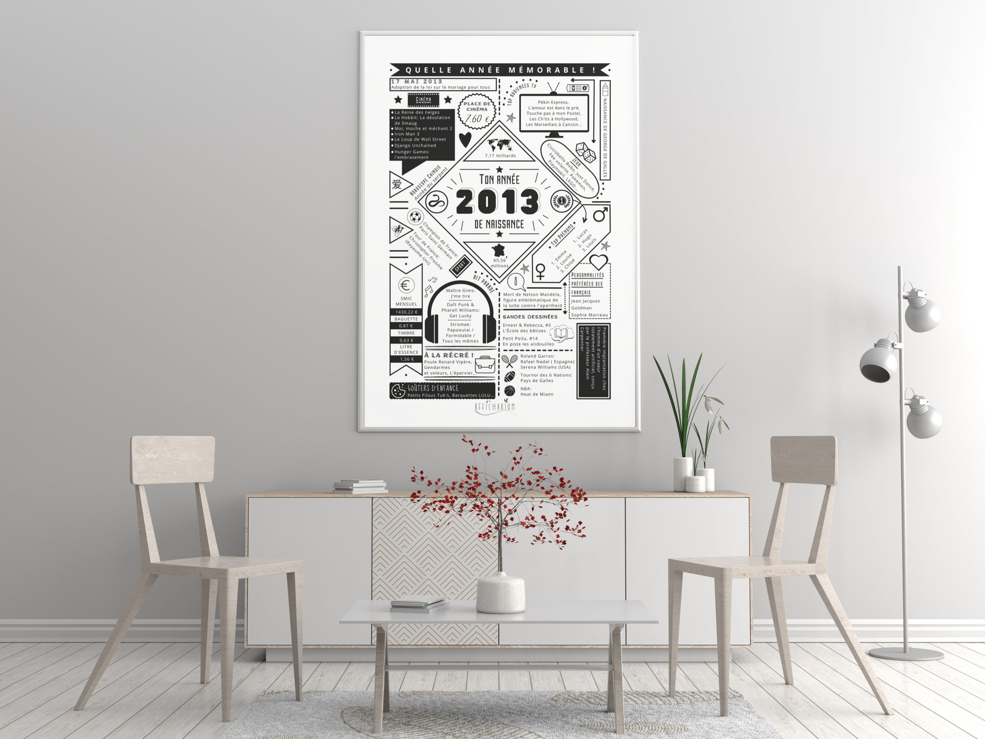Avec cette affiche "ton année de naissance" 2013, offrez un souvenir des faits marquants de l'année de naissance de la personne que vous souhaitez surprendre !