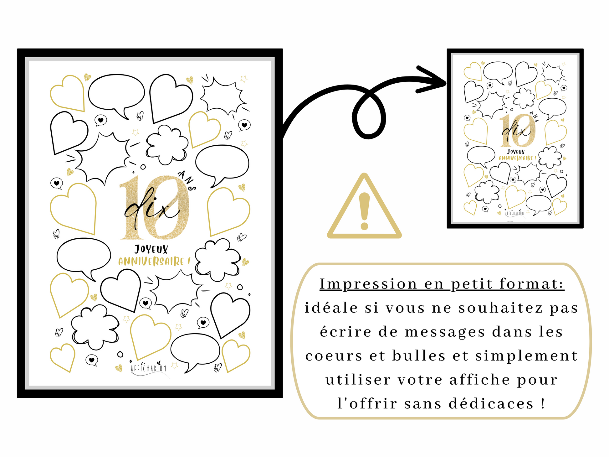 Avec l'affiche anniversaire spéciale 10 ans, vous avez la garantie de dire "Joyeux anniversaire" à votre bien-aimé de façon unique, personnalisée et drôle !