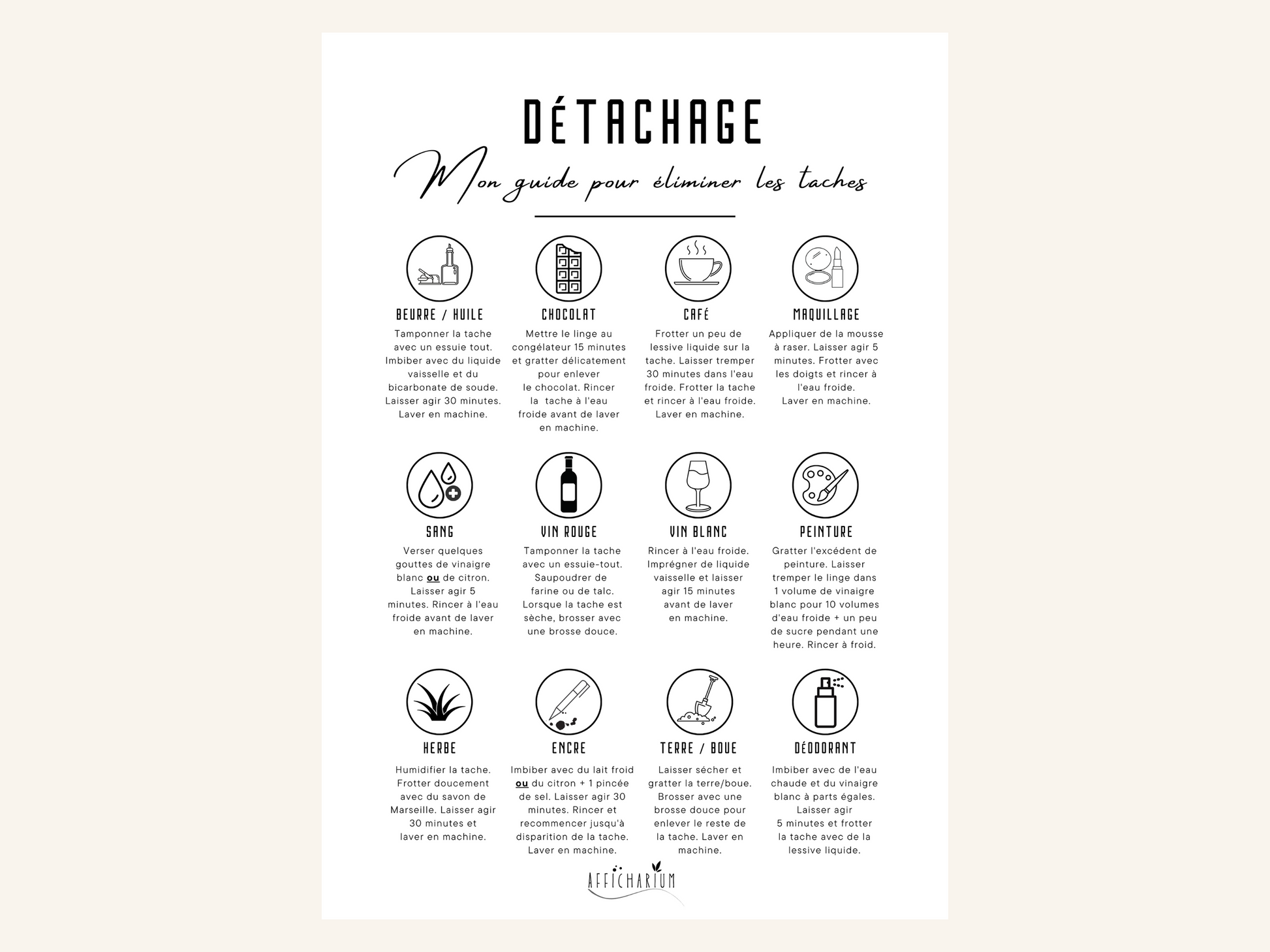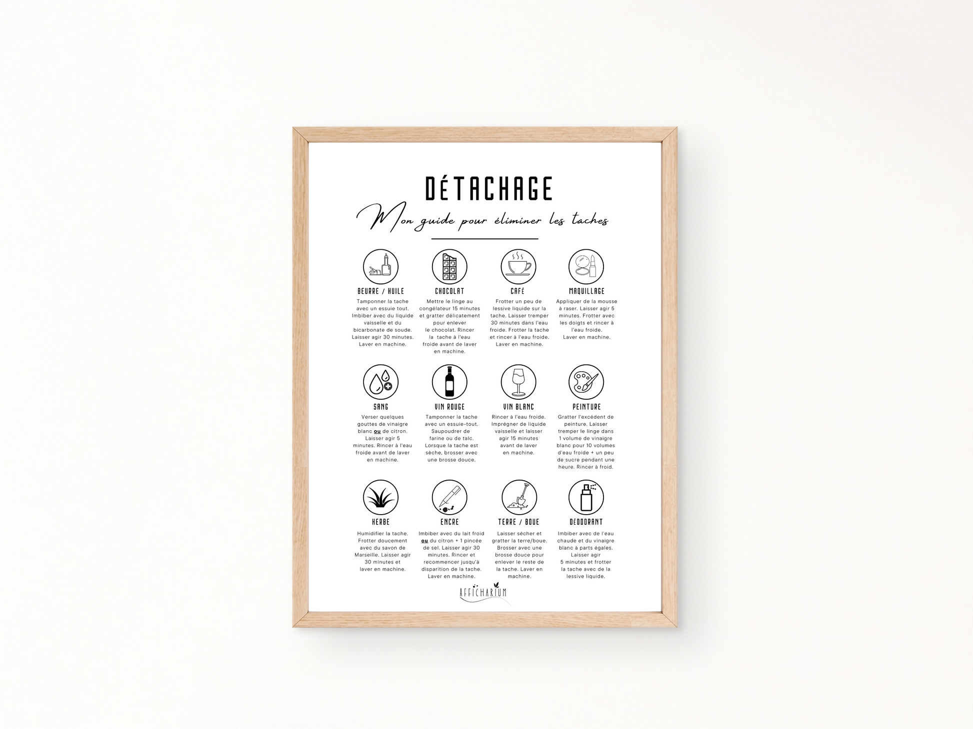 À la fois utile et jolie, cette affiche conçue pour vous guider dans l'entretien de votre linge sera en plus un élément de déco minimaliste à afficher dans votre buanderie !