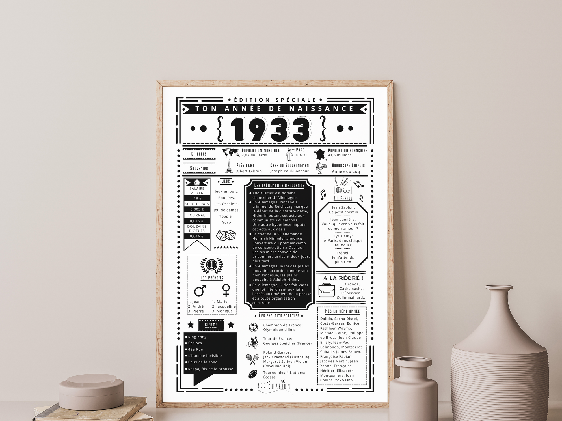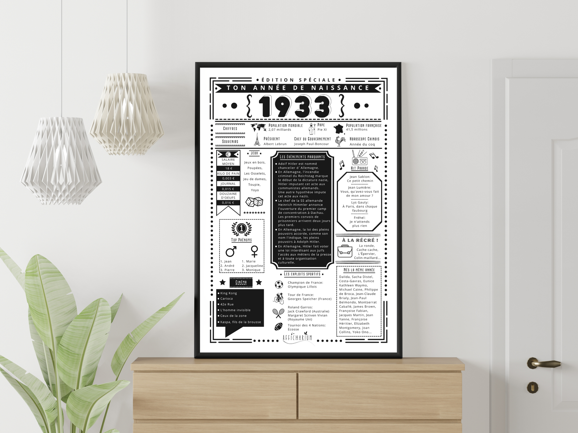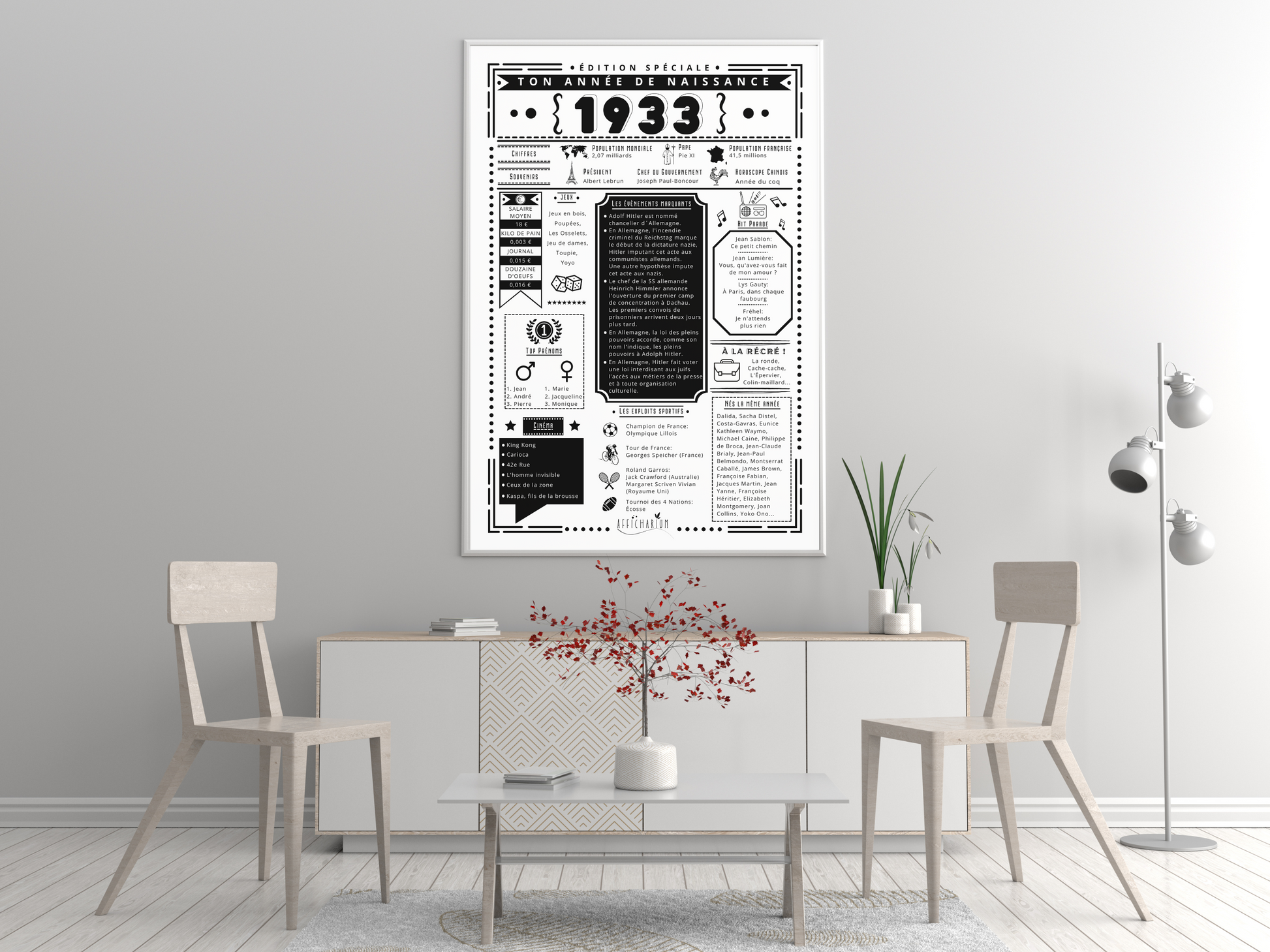Surprenez et faites plaisir avec une affiche remémorant les faits marquants de l'année de naissance de la personne qui fête son anniversaire !