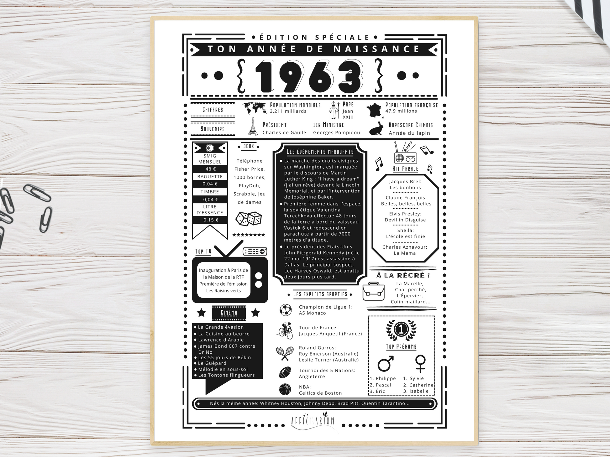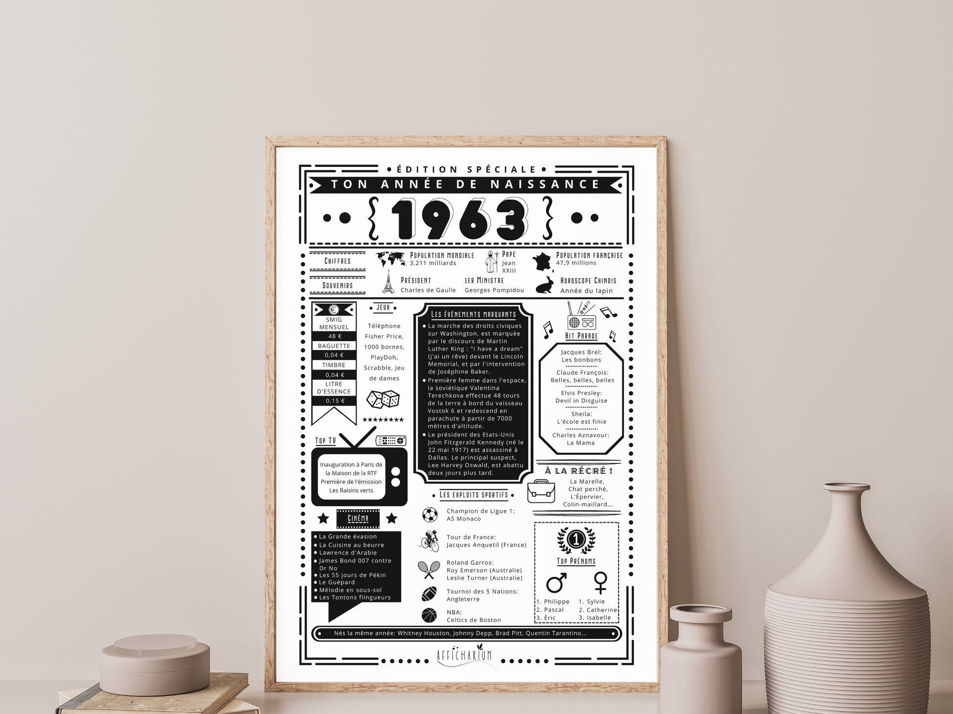 Surprenez et faites plaisir avec une affiche remémorant les faits marquants de l'année de naissance de la personne qui fête son anniversaire !