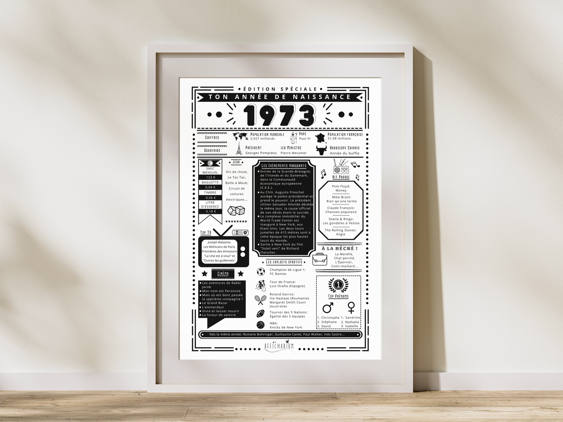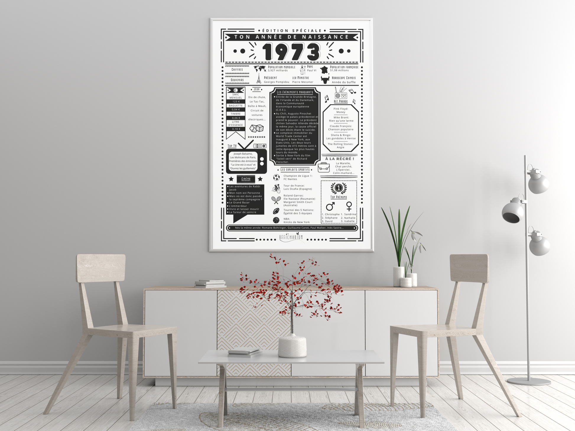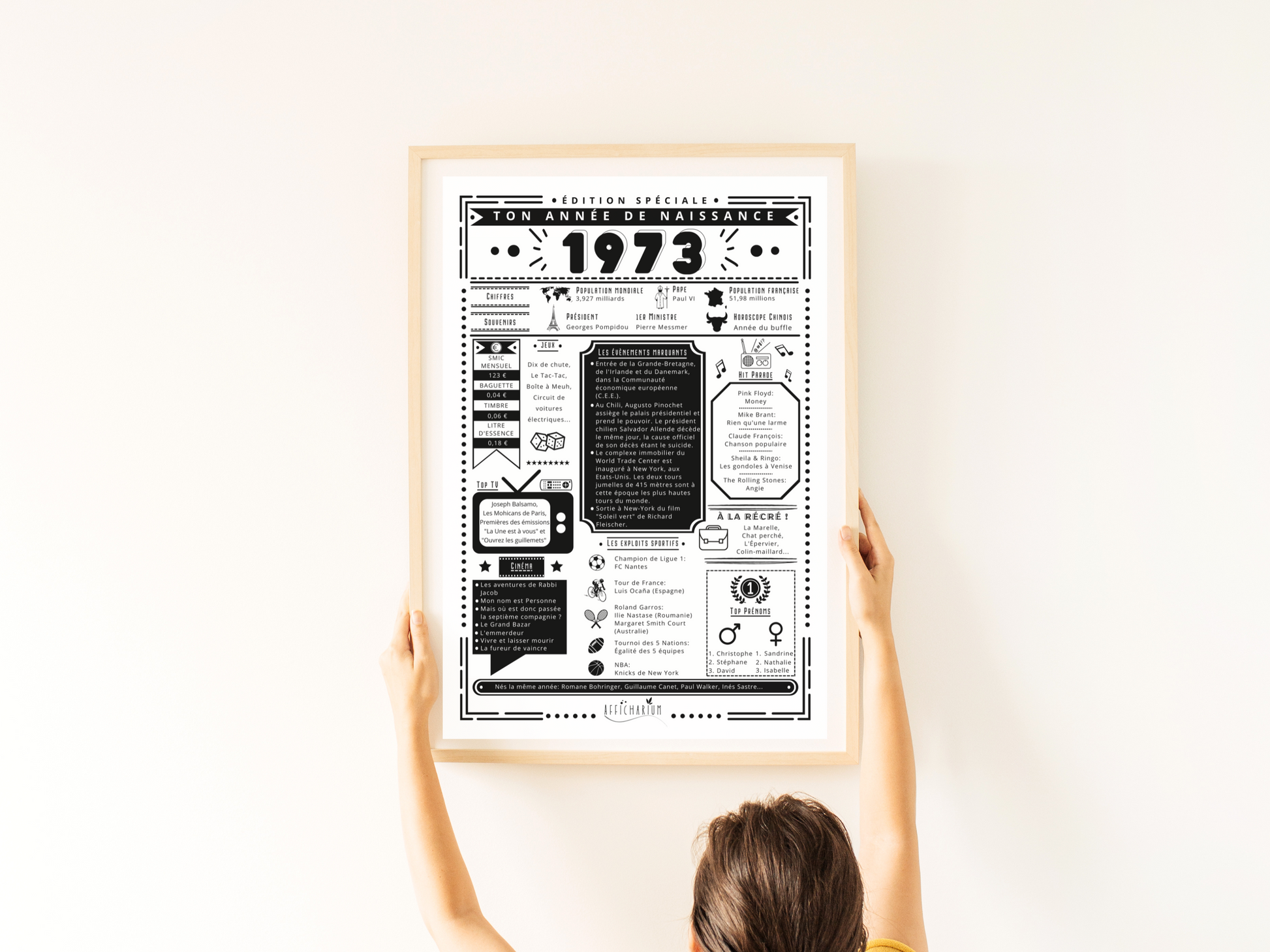 Surprenez et faites plaisir avec une affiche remémorant les faits marquants de l'année de naissance de la personne qui fête son anniversaire !