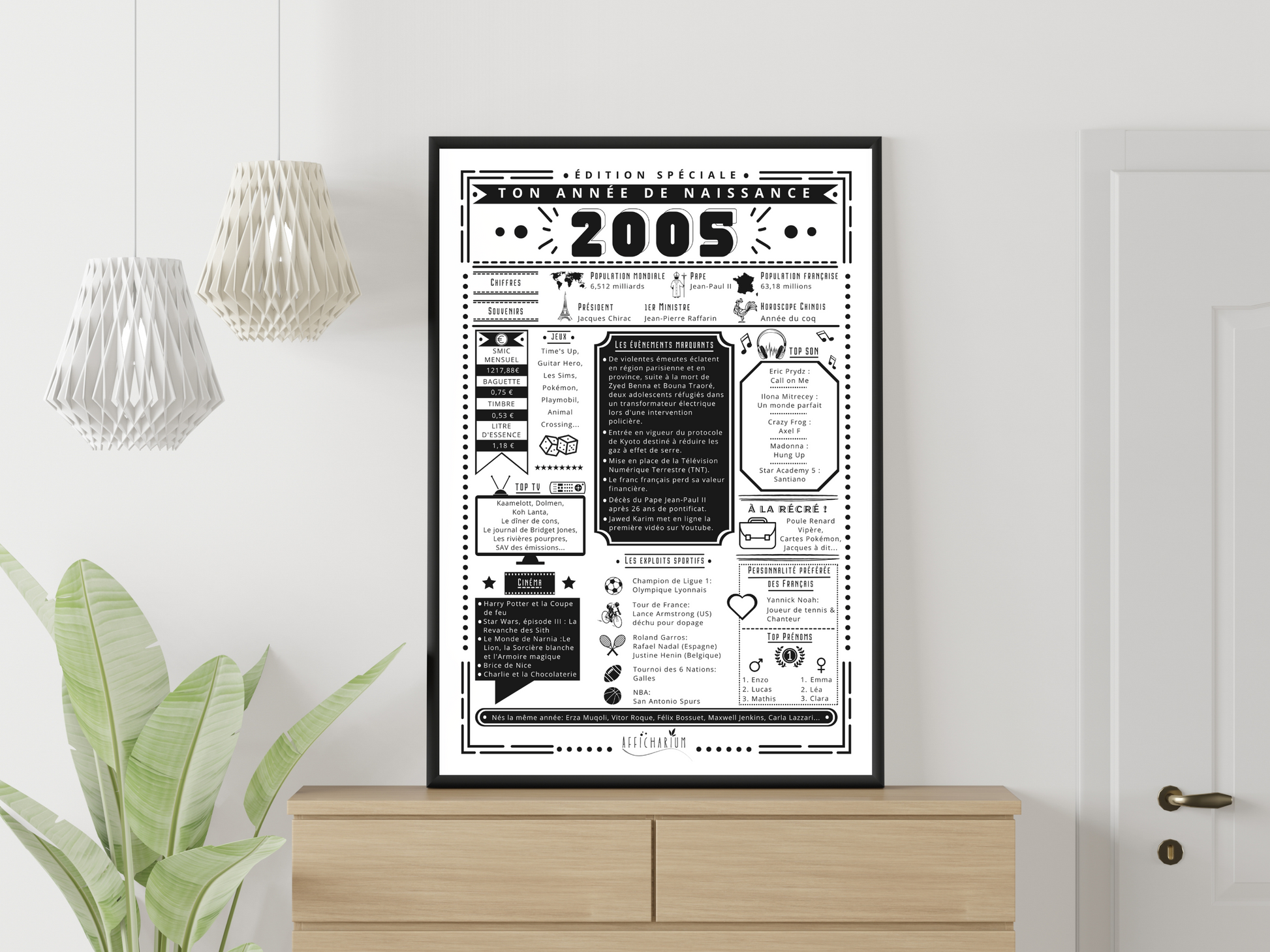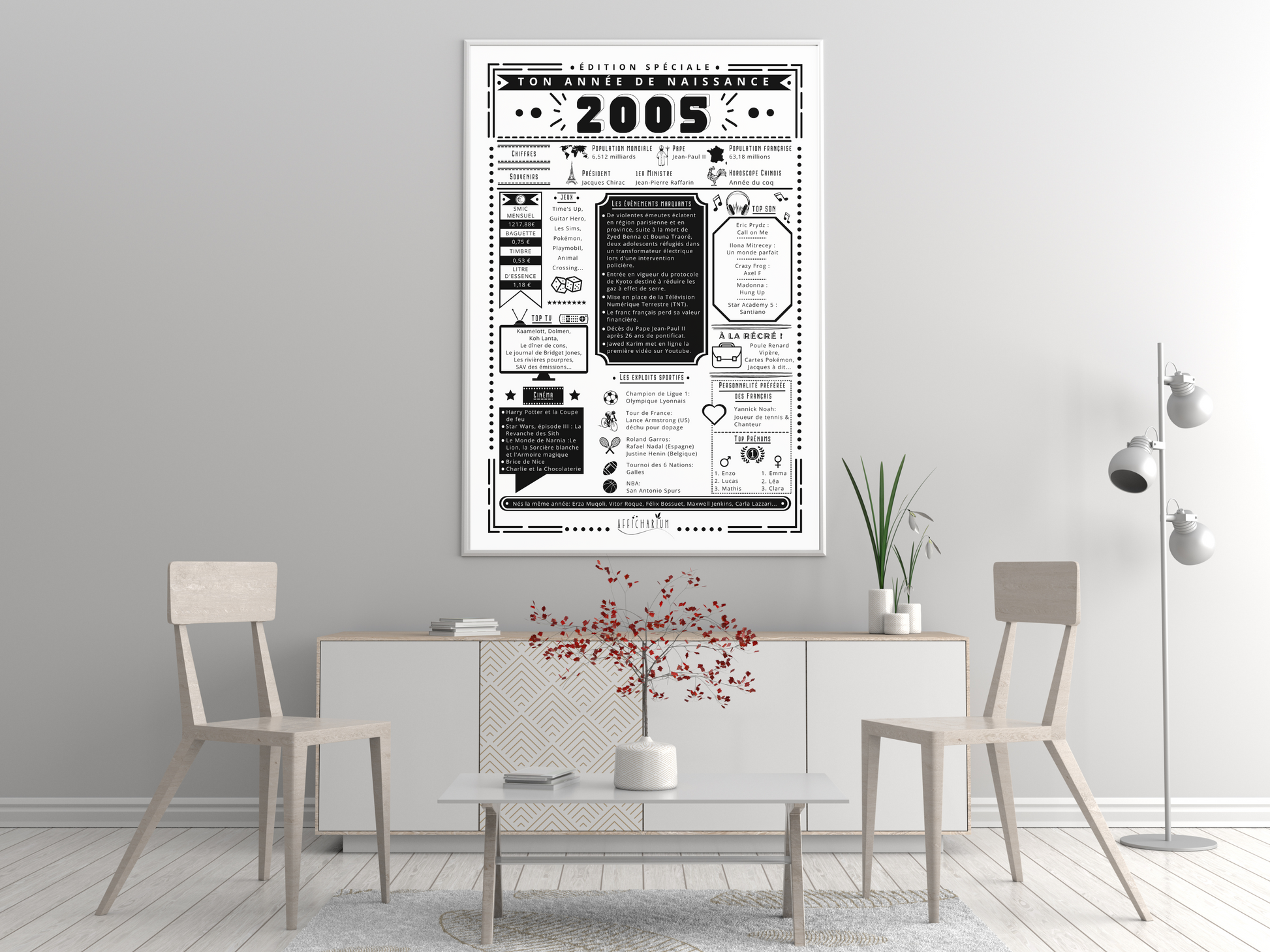 Surprenez et faites plaisir avec une affiche remémorant les faits marquants de l'année de naissance de la personne qui fête son anniversaire !