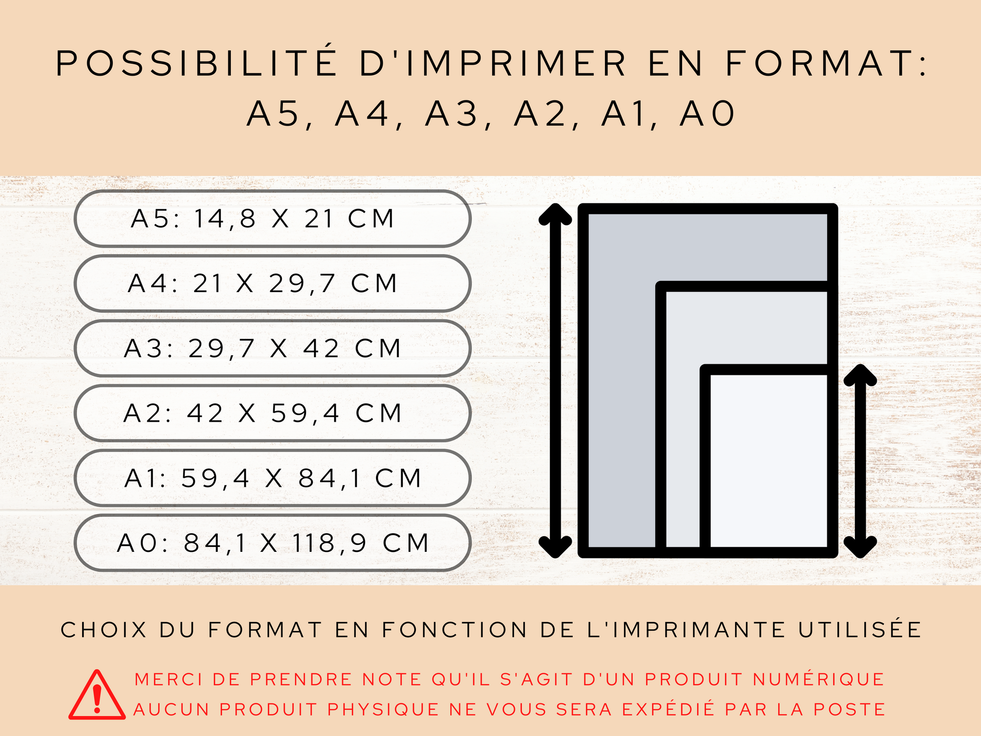 Fichiers numériques haute résolution PDF 300 DPI + JPG, imprimables en format A0, A1, A2, A3, A4, A5.