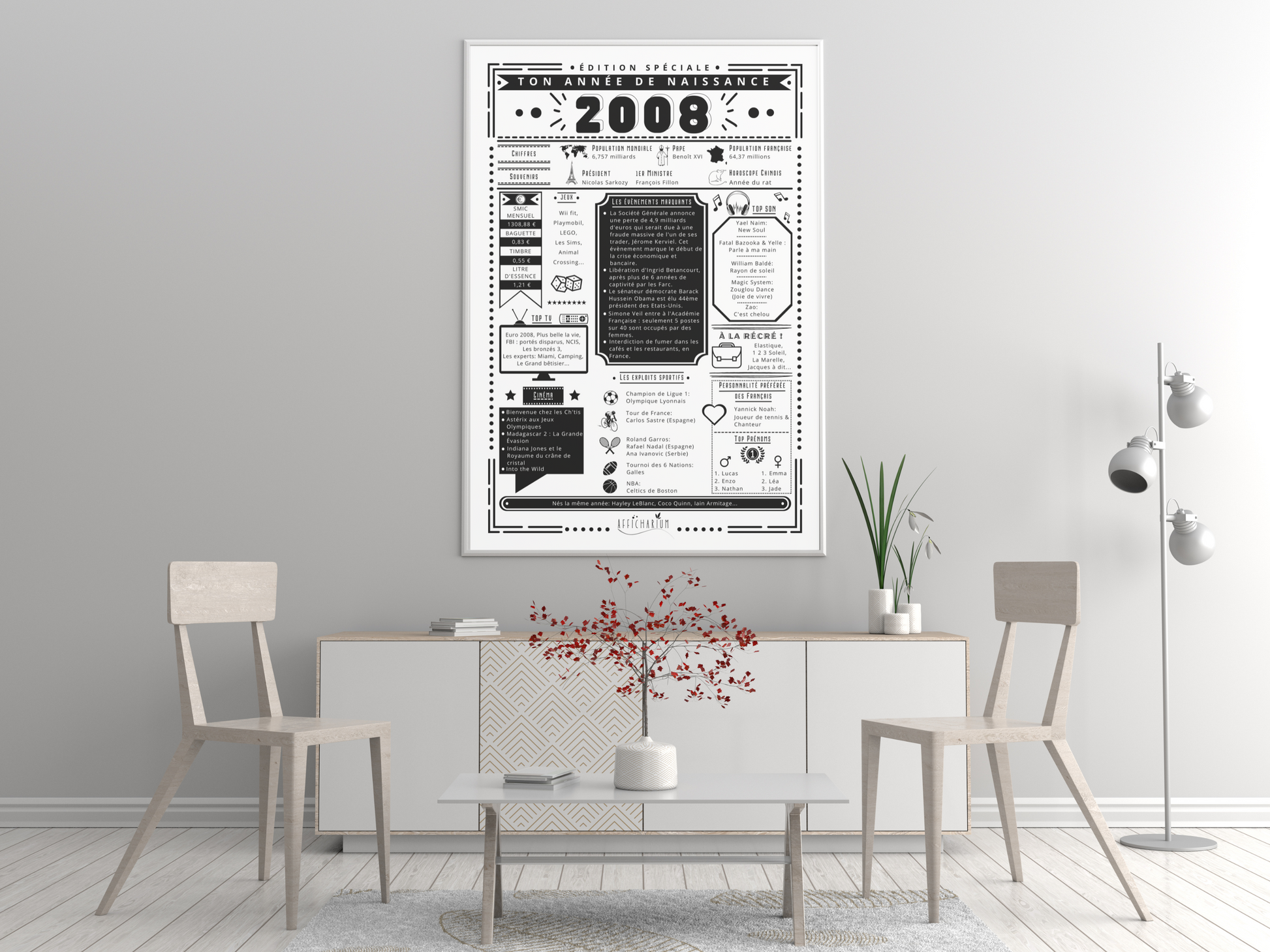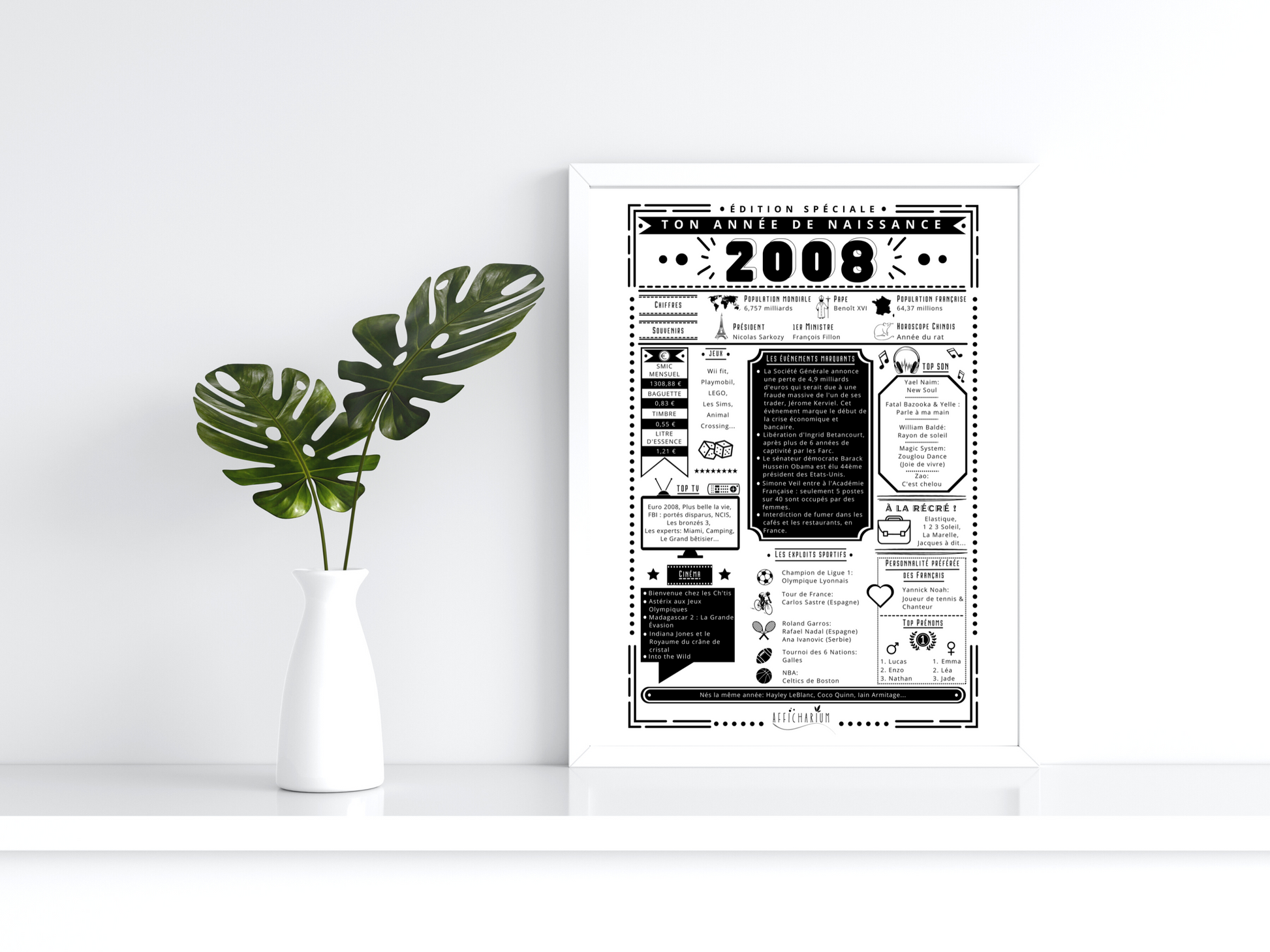 Surprenez et faites plaisir avec une affiche remémorant les faits marquants de l'année de naissance de la personne qui fête son anniversaire !