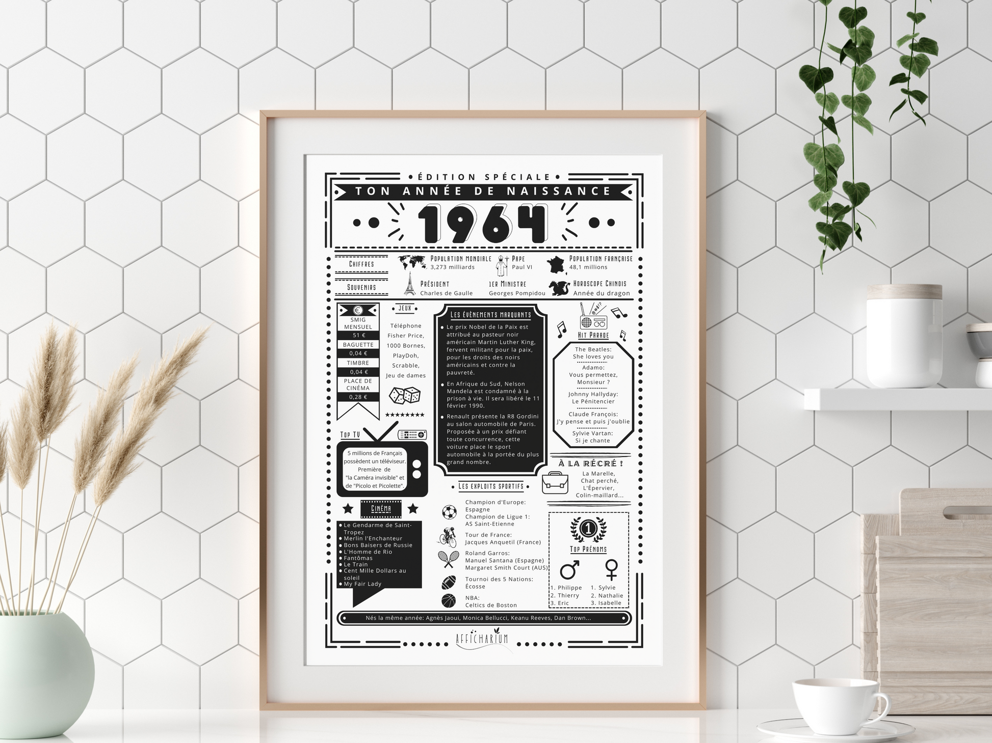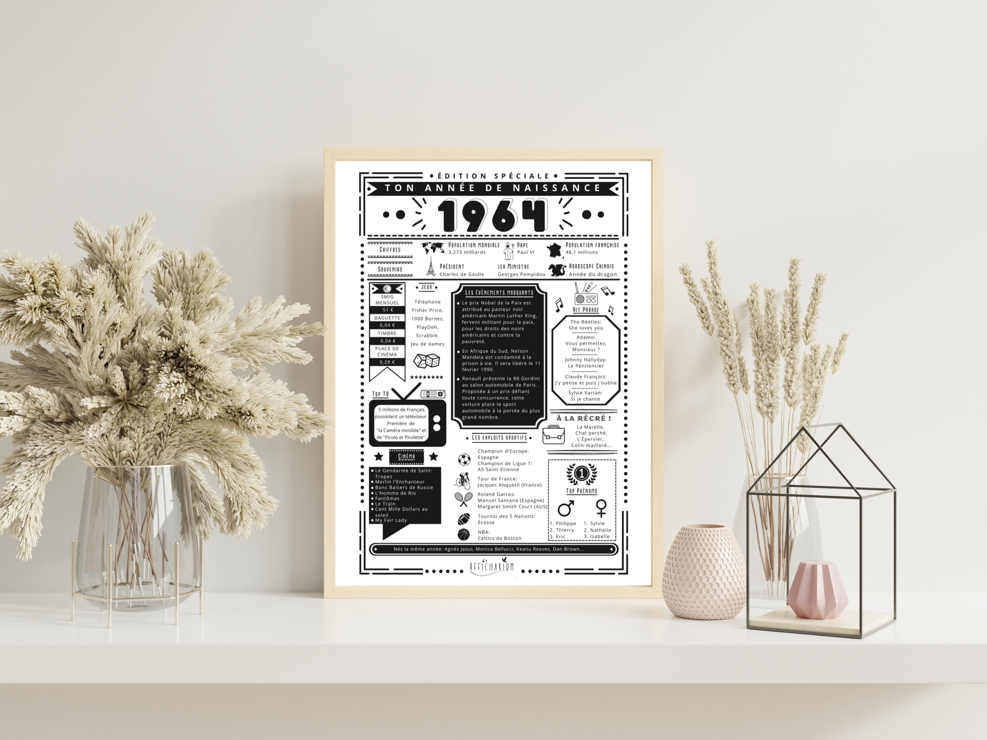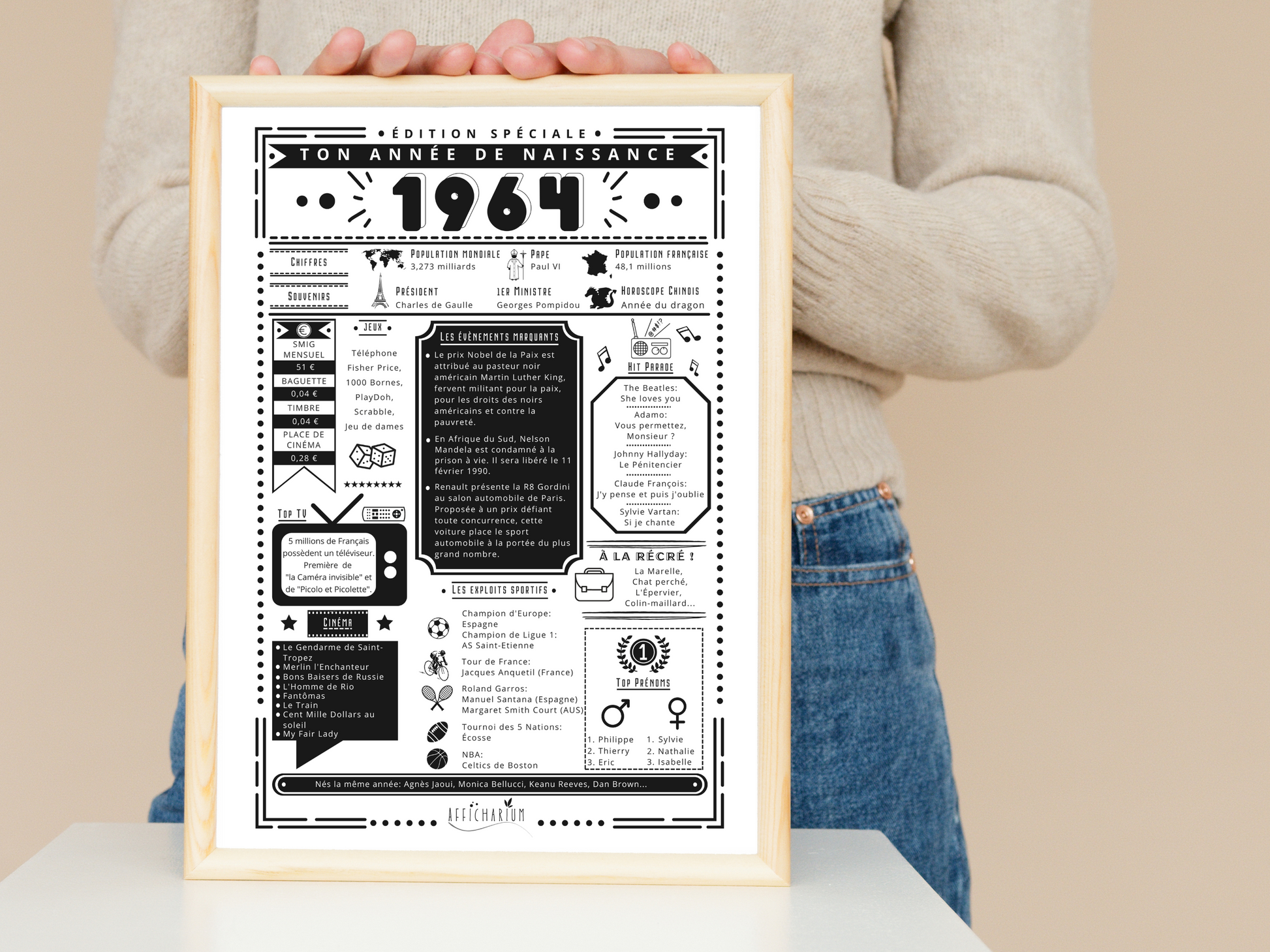 Surprenez et faites plaisir avec une affiche remémorant les faits marquants de l'année de naissance de la personne qui fête son anniversaire !