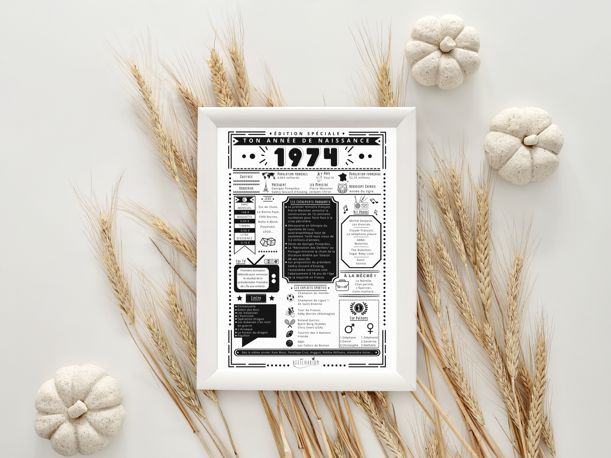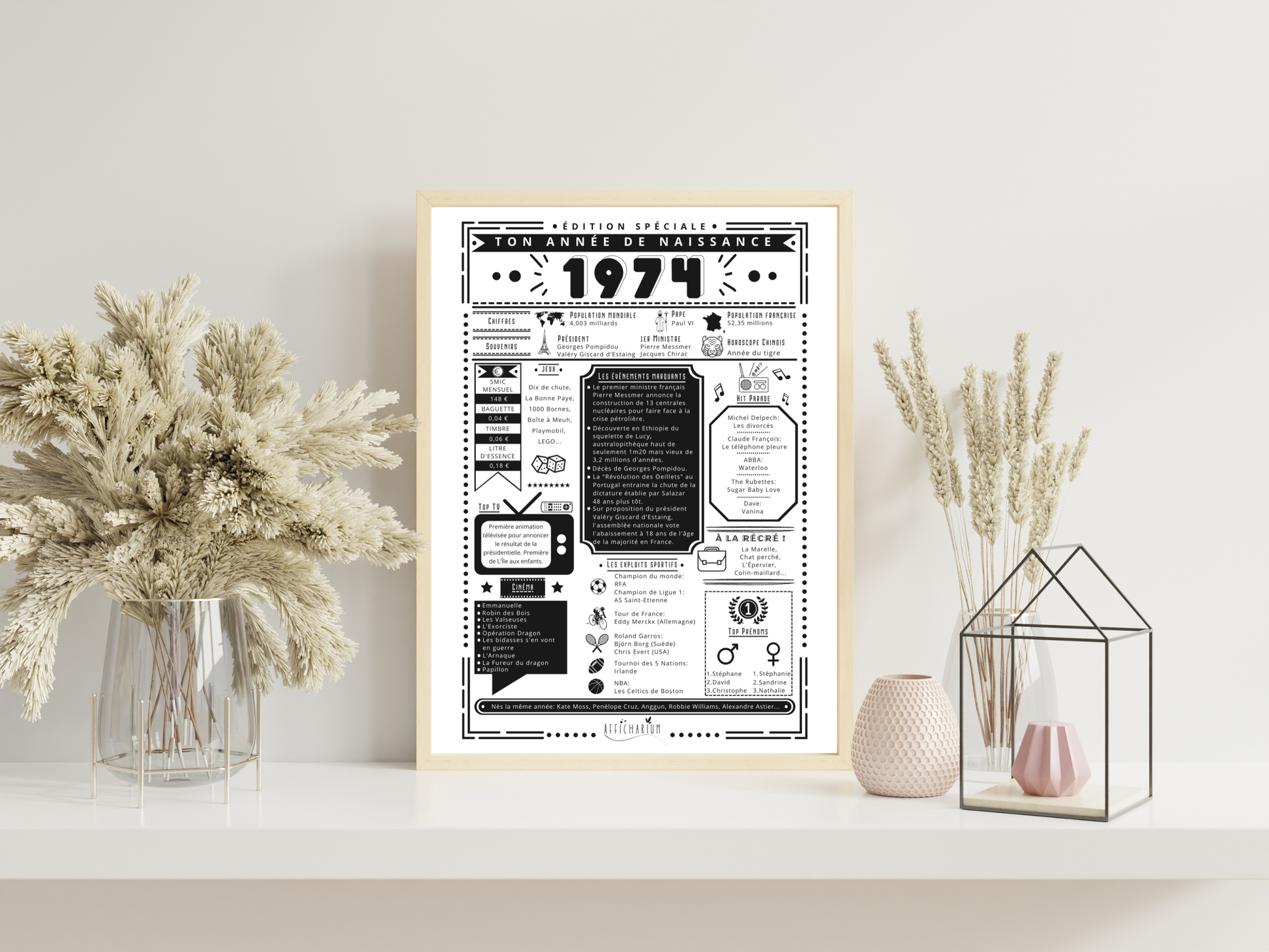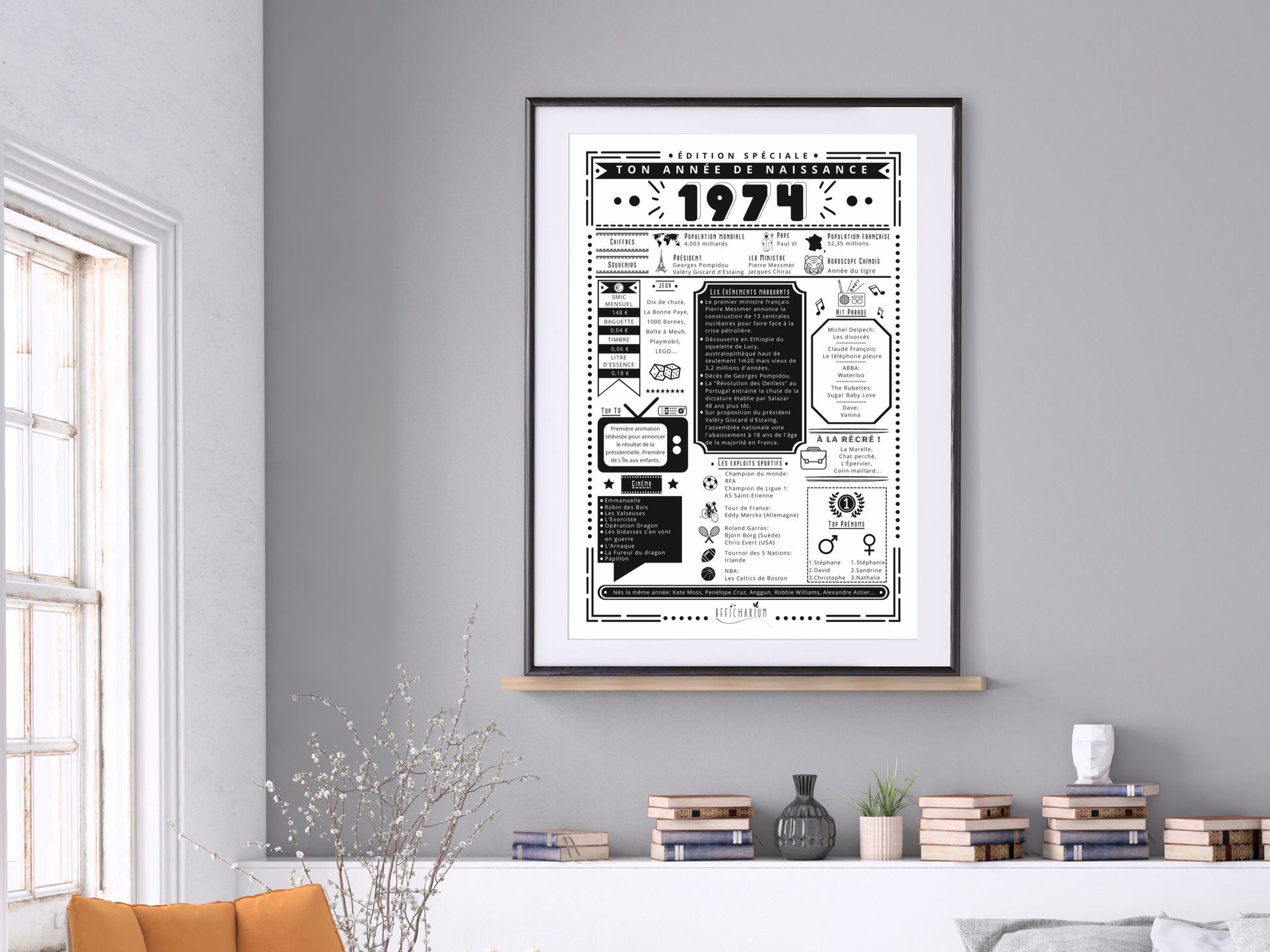 Surprenez et faites plaisir avec une affiche remémorant les faits marquants de l'année de naissance de la personne qui fête son anniversaire !